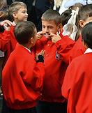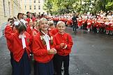 День знаний. Торжественная линейка в школе № 280 имени М.Ю. Лермонтова. Жанровая фотография. Учащиеся перед началом линейки.