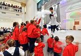 День знаний. Торжественная линейка в школе № 280 имени М.Ю. Лермонтова. Жанровая фотография. Учащиеся перед началом линейки в актовом зале школы.