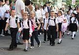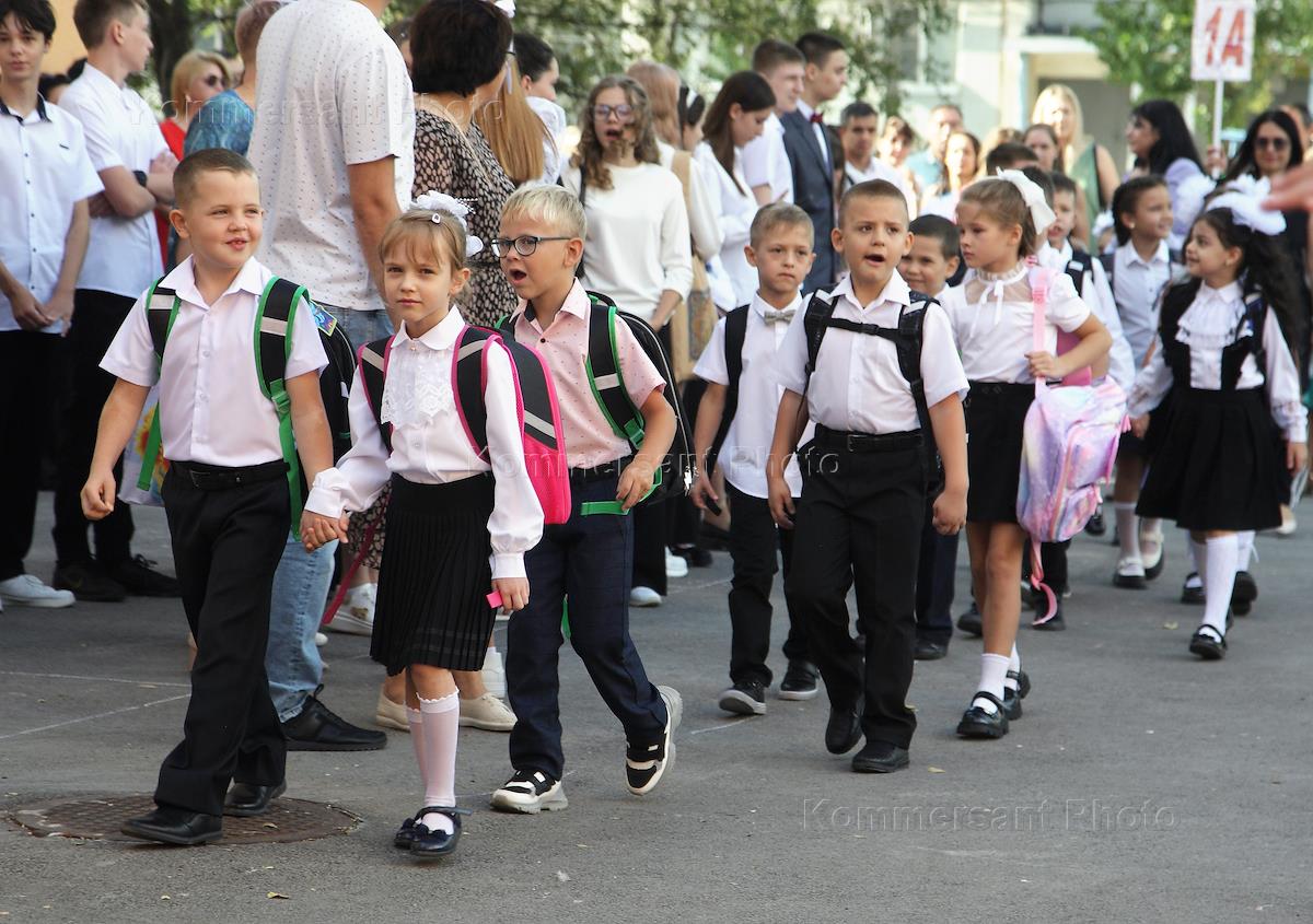 День знаний в средней общеобразовательной школе №12. Учащиеся 1 Б класса во время линейки.