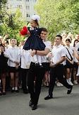 День знаний в средней общеобразовательной школе №12. Учащиеся во время линейки.