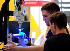 Восточный экономический форум (ВЭФ) 2024 на территории Дальневосточного федерального университета (ДВФУ) на острове Русский. Второй день. Жанровая фотография. Участники форума на стенде Министерства промышленности и торговли России.