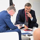 Рабочая поездка президента России Владимира Путина в Дальневосточный федеральный округ. Восточный экономический форум (ВЭФ) 2024 на территории Дальневосточного федерального университета (ДВФУ) на острове Русский. Министр экономического развития России Максим Решетников (слева) и министр науки и высшего образования России Валерий Фальков (справа) перед началом встречи президента России Владимира Путина с премьер-министром Малайзии Анваром Ибрагимом в рамках форума.