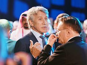 Восточный экономический форум (ВЭФ) 2024 на территории Дальневосточного федерального университета (ДВФУ) на острове Русский. Генеральный директор компании Rasis company Ltd, член Арабской сети инноваций и творчества Наваф Альмутаири (справа) перед началом пленарного заседания.