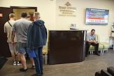 Пункт отбора на военную службу по контракту Южного военного округа. Молодой человек у кабинета нарколога.