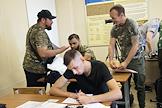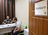 Пункт отбора на военную службу по контракту Южного военного округа. Мужчина на приеме у психиатра.