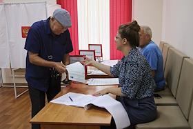 Голосование при проведении довыборов в Государственную Думу РФ в Единый день голосования 2024 в поселке Водопадный.