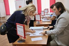 Единый день голосования 2024. Дополнительные выборы депутата от Ростовской области в Государственную думу России. Голосование на избирательном участке в поселке Водопадный. Жанровая фотография.