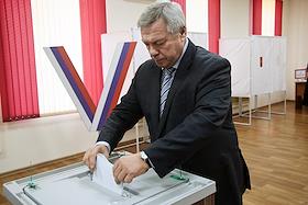 Единый день голосования 2024. Дополнительные выборы депутата от Ростовской области в Государственную думу России. Губернатор Ростовской области Василий Голубев во время голосования на избирательном участке в поселке Водопадный.