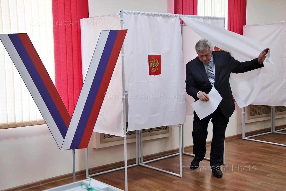 Единый день голосования 2024. Дополнительные выборы депутата от Ростовской области в Государственную думу России. Губернатор Ростовской области Василий Голубев во время голосования на избирательном участке в поселке Водопадный.