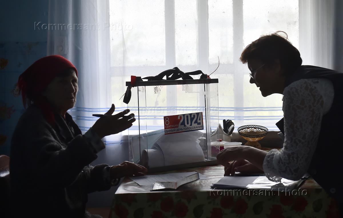 Single voting day 2024. Elections of the head of the Altai Republic and deputies to the State Assembly - El Kurultai of the Altai Republic. Polling station in the village of Choya.