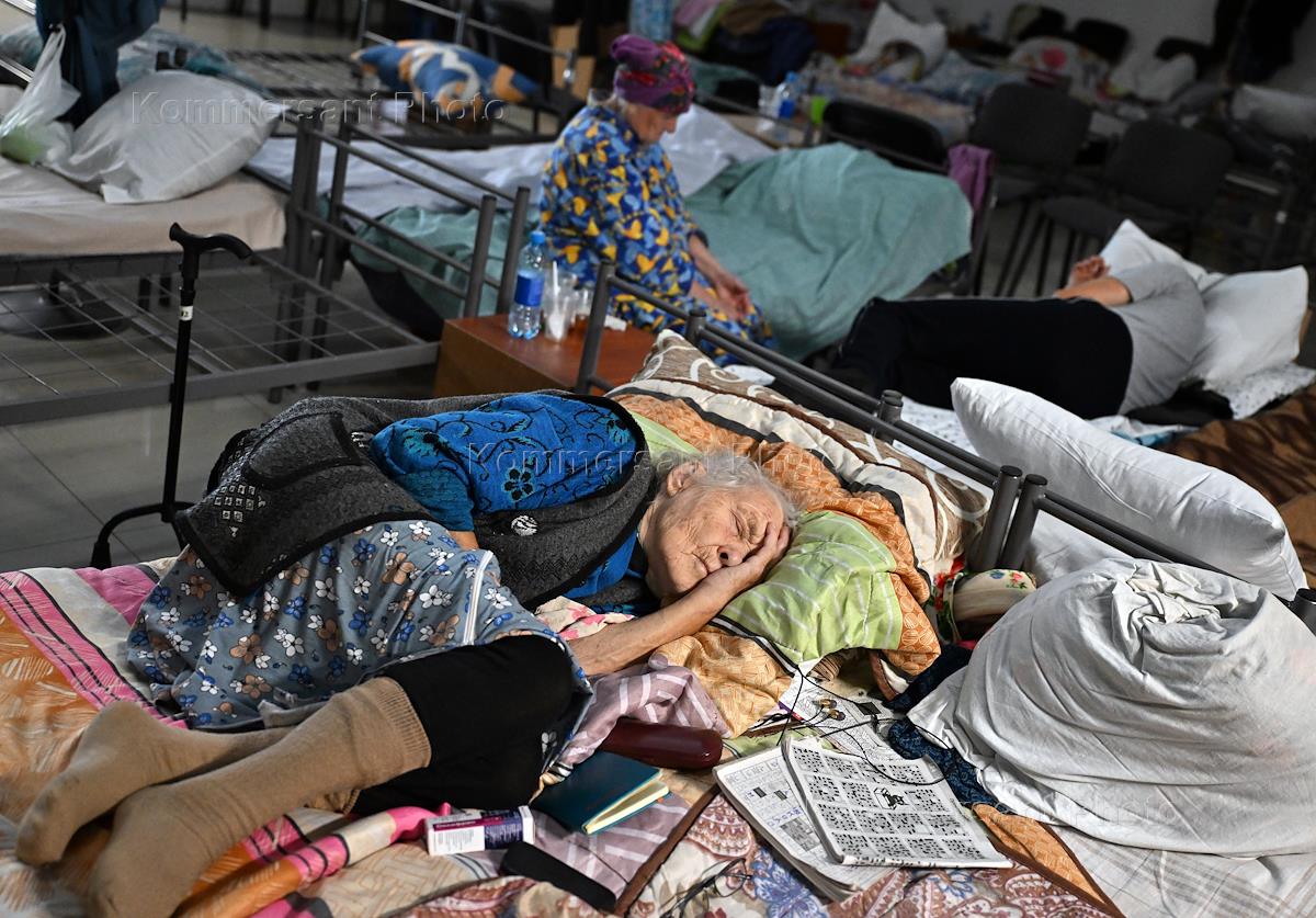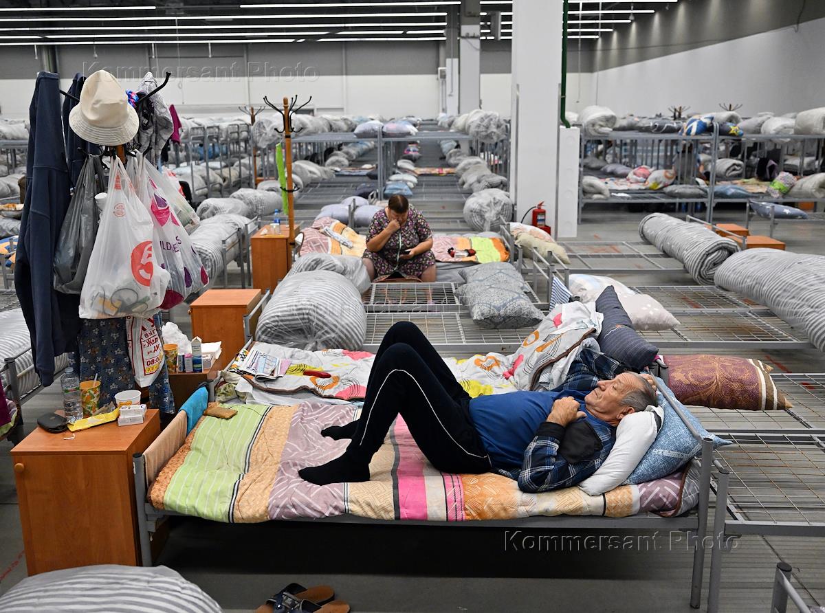 Temporary accommodation point for refugees from border areas in the Kursk Region. Genre photography.