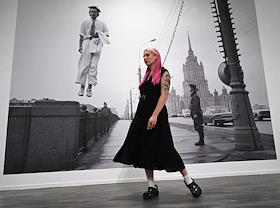Церемония открытия выставки фотографов Сергея Борисова и Михаила Розанова "Город сказка" в Московском музее современного искусства (ММОМА). Жанровая фотография.