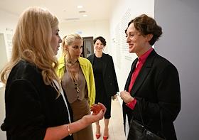 Церемония открытия выставки фотографов Сергея Борисова и Михаила Розанова "Город сказка" в Московском музее современного искусства (ММОМА). Художница Анн Броше (справа) на церемонии.