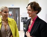 Церемония открытия выставки фотографов Сергея Борисова и Михаила Розанова "Город сказка" в Московском музее современного искусства (ММОМА). Директор Фонда содействия развитию современного искусства RuArts Марианна Сардарова (слева) и художница Анн Броше (справа) на церемонии.
