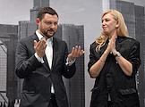 Церемония открытия выставки фотографов Сергея Борисова и Михаила Розанова "Город сказка" в Московском музее современного искусства (ММОМА). Директор Фонда содействия развитию современного искусства RuArts Марианна Сардарова (слева) и арт-директор московской галереи актуального искусства RuArts Катрин Борисов (справа) на церемонии.