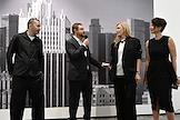 Церемония открытия выставки фотографов Сергея Борисова и Михаила Розанова "Город сказка" в Московском музее современного искусства (ММОМА). Слева направо: фотограф Михаил Розанов, исполнительный директор Московского музея современного искусства (ММСИ) Василий Церетели, директор Фонда содействия развитию современного искусства RuArts Марианна Сардароваи и арт-директор московской галереи актуального искусства RuArts Катрин Борисов на церемонии.