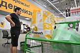 Торжественная церемония открытия первого полностью ребрендированного магазина "Лемана ПРО" (бывший "Леруа Мерлен") в Мытищах. Покупатель в отделе мебели для дома.