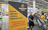 Торжественная церемония открытия первого полностью ребрендированного магазина "Лемана ПРО" (бывший "Леруа Мерлен") в Мытищах. Покупатели с товаром в зале магазина.