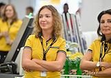 Торжественная церемония открытия первого полностью ребрендированного магазина "Лемана ПРО" (бывший "Леруа Мерлен") в Мытищах. Сотрудницы магазина в фирменной одежде.