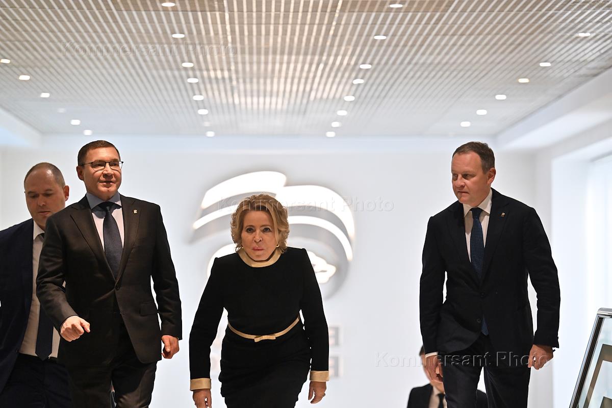 Совместное заседание президиума Генерального совета и бюро Высшего совета партии "Единая Россия" по предварительным результатам выборов в единый день голосования в Центральном исполкоме партии "Единая Россия". Справа налево: руководитель Центрального исполнительного комитета партии "Единая Россия", заместитель секретаря генерального совета партии Александр Сидякин, председатель Совета Федерации России Валентина Матвиенко и полномочный представитель президента России в Уральском федеральном округе Владимир Якушев (слева) перед началом заседания.
