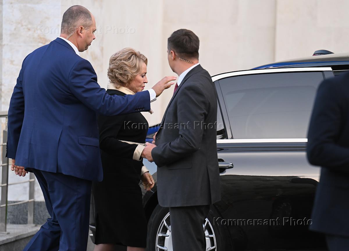 Совместное заседание президиума Генерального совета и бюро Высшего совета партии "Единая Россия" по предварительным результатам выборов в единый день голосования в Центральном исполкоме партии "Единая Россия". Председатель Совета Федерации России Валентина Матвиенко (в центре) перед началом заседания.