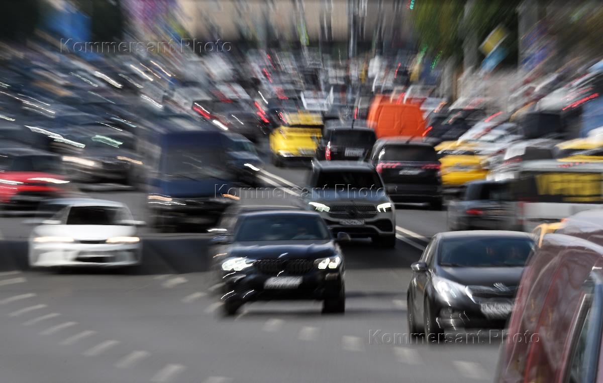 Виды вечерней Москвы. Жанровая фотография. Автомобили на дороге.