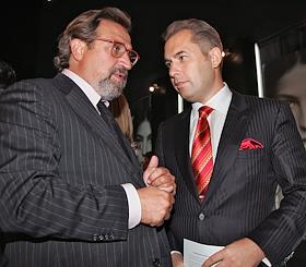 Вице-президент "Альфа-банка" Александр Гафин (слева) и адвокат Павел Астахов (справа) на коктейле, в честь открытия бутика "Шанель" (Chanel) в Столешниковом переулке.