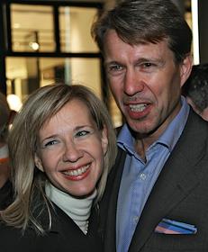 Член совета директоров "IM" Михаил фон Шлиппе (справа) с супругой, руководитель агентства "RSVP" Бетиной (слева) на коктейле, в честь открытия бутика "Шанель" (Chanel) в Столешниковом переулке.