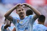 Мир Российская Премьер-Лига (РПЛ) 2024/2025. 8-й тур. Матч между командами ЦСКА (Москва) - "Зенит" (Санкт-Петербург) на стадионе "ВЭБ Арена". Игрок команды "Зенит" Александр Соболев во время матча.
