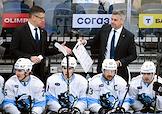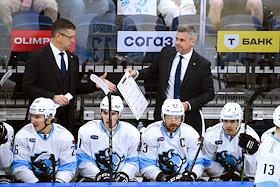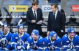 Континентальная хоккейная лига (КХЛ). Чемпионат сезона 2024/25. Матч между командами "Динамо" (Москва) -"Динамо" (Минск) на стадионе "ВТБ Арена". Главный тренер команды "Динамо" Алексей Кудашов (слева) во время матча.