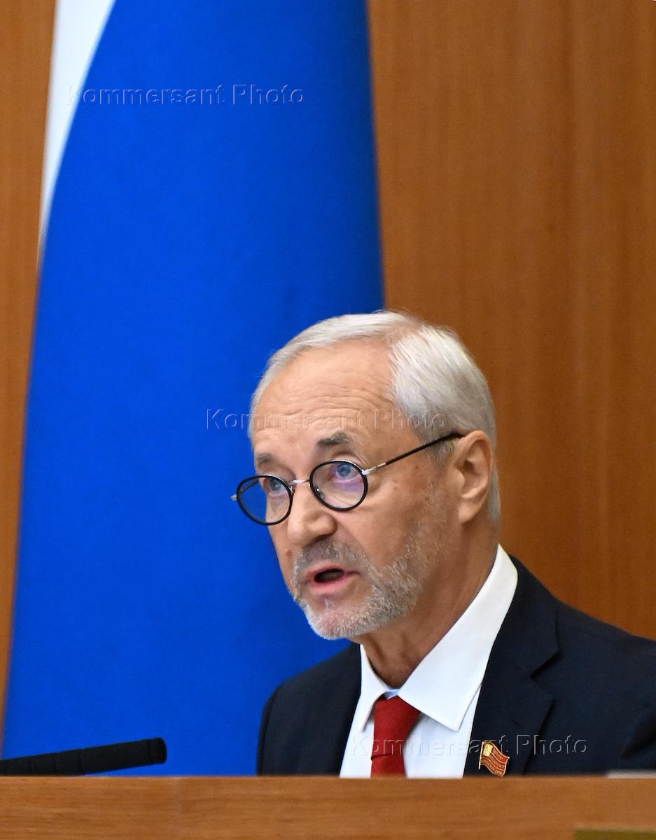 Первое заседание Московской городской Думы (Мосгордума) восьмого созыва. Депутат Мосгордумы, художественный руководитель театра Сатиры и театра на Малой Ордынке Евгений Герасимов (справа) во время заседания.