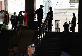Ситуация у БЦ "Романов двор", где расположен офис компании Wildberries. В Москве возле в офиса Wildberries в бизнес-центре "Романов Двор" была слышна стрельба. Wildberries сообщила, что в их офис попытался "незаконно проникнуть" муж основательницы компании Владислав Бакальчук. Жанровая фотография.