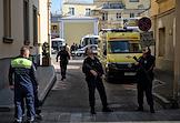 Ситуация у БЦ "Романов двор", где расположен офис компании Wildberries. В Москве возле в офиса Wildberries в бизнес-центре "Романов Двор" была слышна стрельба. Wildberries сообщила, что в их офис попытался "незаконно проникнуть" муж основательницы компании Владислав Бакальчук. Жанровая фотография. Сотрудники правоохранительных органов и медицины катастроф у БЦ.
