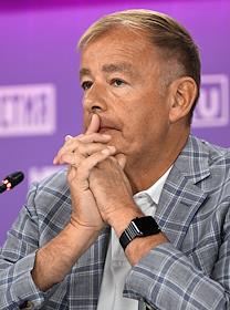 Пресс-конференция Российского союза туриндустрии (РСТ) "Завершение летнего туристического сезона: итоги и прогнозы на осень" в пресс-центре МИЦ "Известия". Президент РСТ Илья Уманский во время пресс-конференции.