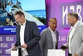 Пресс-конференция Российского союза туриндустрии (РСТ) "Завершение летнего туристического сезона: итоги и прогнозы на осень" в пресс-центре МИЦ "Известия". Слева направо: вице-президент РСТ, руководитель комитета РСТ по приключенческому туризму Вадим Мамонтов, президент РСТ Илья Уманский и вице-президент РСТ, руководитель комиссии РСТ по авиаперевозкам Дмитрий Горин во время пресс-конференции.