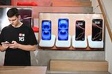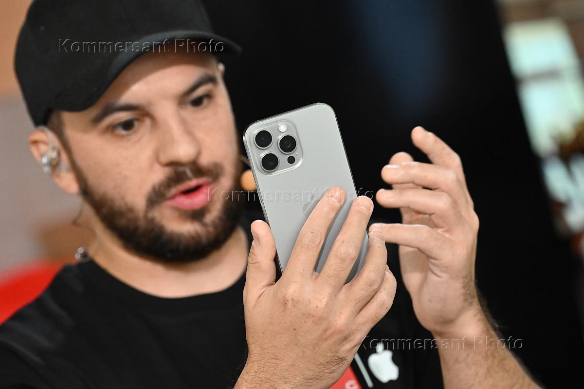 Презентация Iphone 16 во флагманском магазине МТС на улице Тверская. Посетители магазина во время тестирования.