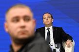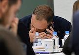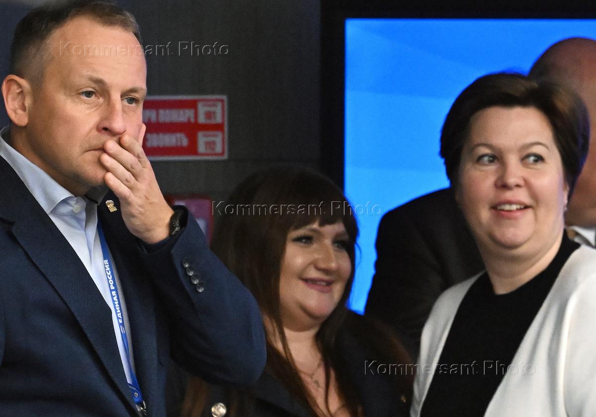 Пленарное заседание Совета первичных отделений партии "Единая Россия" в Центральном исполкоме партии. Руководитель Центрального исполнительного комитета партии "Единая Россия", заместитель секретаря генерального совета партии, депутат Государственной думы (ГД) России Александр Сидякин (слева) во время заседания.