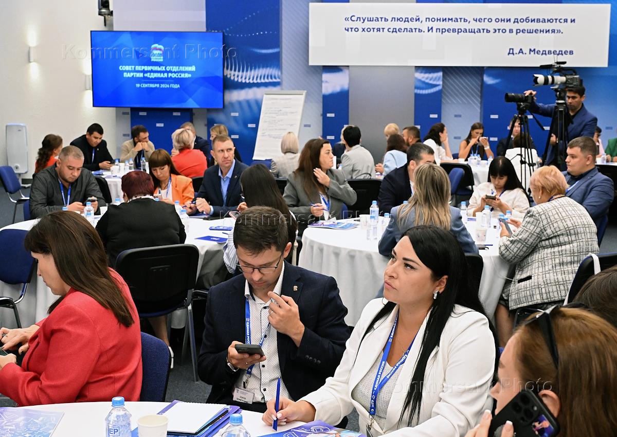 Пленарное заседание Совета первичных отделений партии "Единая Россия" в Центральном исполкоме партии.