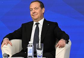 Пленарное заседание Совета первичных отделений партии "Единая Россия" в Центральном исполкоме партии. Председатель партии "Единая Россия", заместитель председателя Совета безопасности России Дмитрий Медведев во время заседания.