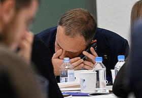 Пленарное заседание Совета первичных отделений партии "Единая Россия" в Центральном исполкоме партии. Жанровая фотография.