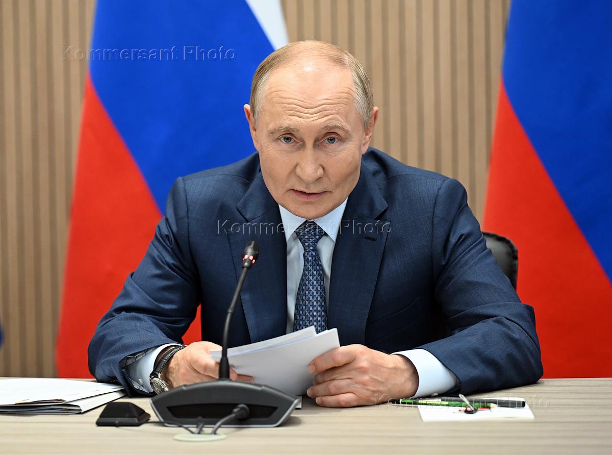 Рабочая поездка президента России Владимира Путина в Санкт-Петербург. Заседание Военно-промышленной комиссии по вопросу развития БПЛА специального назначения. Президент России Владимир Путин во время заседания.