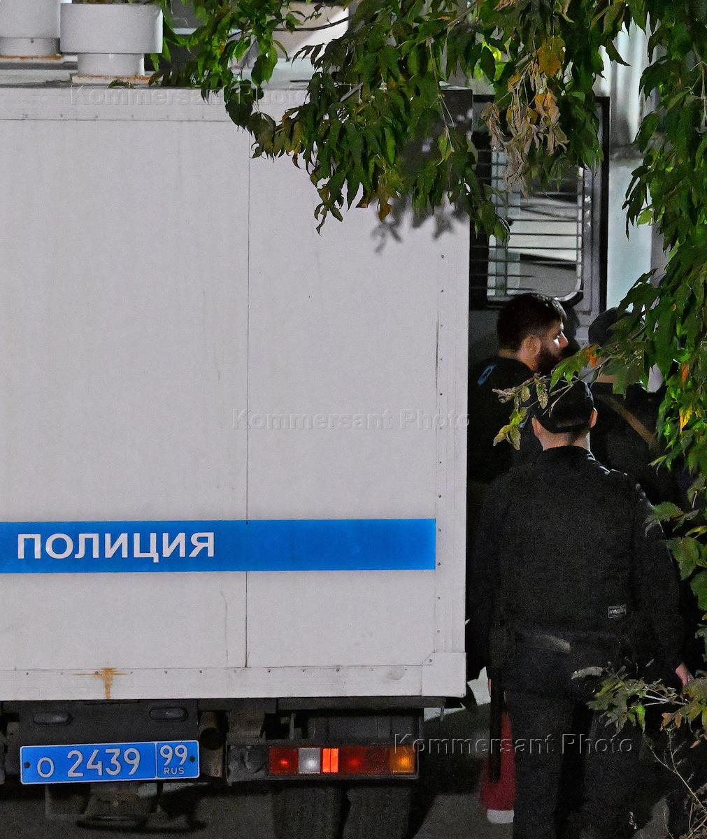 Ситуация у Басманного районного суда. Жанровая фотография. Сотрудники полиции и автомобиль у суда.