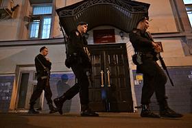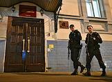 Ситуация у Басманного районного суда. Жанровая фотография. Сотрудники полиции у суда.