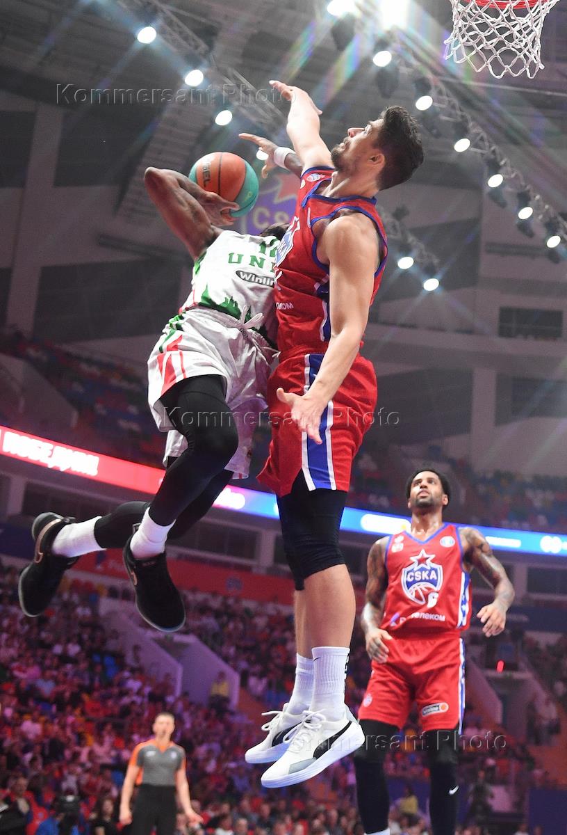 Единая лига ВТБ по баскетболу. Сезон 2024/2025. Матч между командами ЦСКА (Москва) и УНИКС (Казань) во Дворце спорта "Мегаспорт". Игрок команды ЦСКА Тони Джекири (справа) во время матча.
