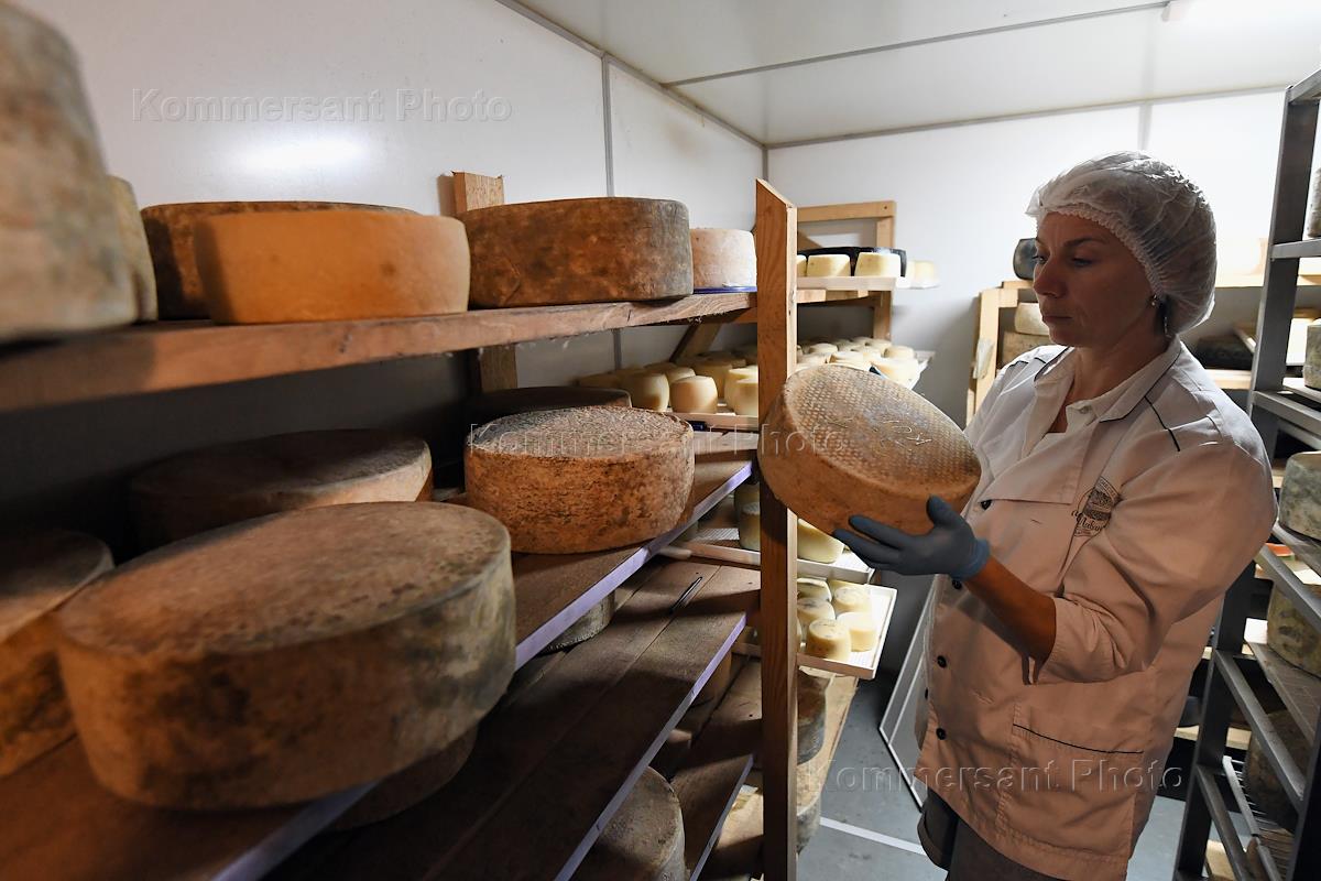 Работа семейной сыроварни "Чудная лаванда". Жанровая фотография. Работники сыроварни во время производства сыра.
