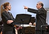 Фестиваль Российского национального оркестра (РНО). Заключительный концерт в концертном зале имени П.И.Чайковского. Дирижер Александр Рудин (справа) и концертмейстер РНО Татьяна Поршнева (слева) во время концерта.