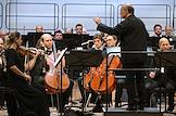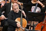 Фестиваль Российского национального оркестра (РНО). Заключительный концерт в концертном зале имени П.И.Чайковского. Виолончелист, дирижер Александр Рудин (справа) во время концерта.