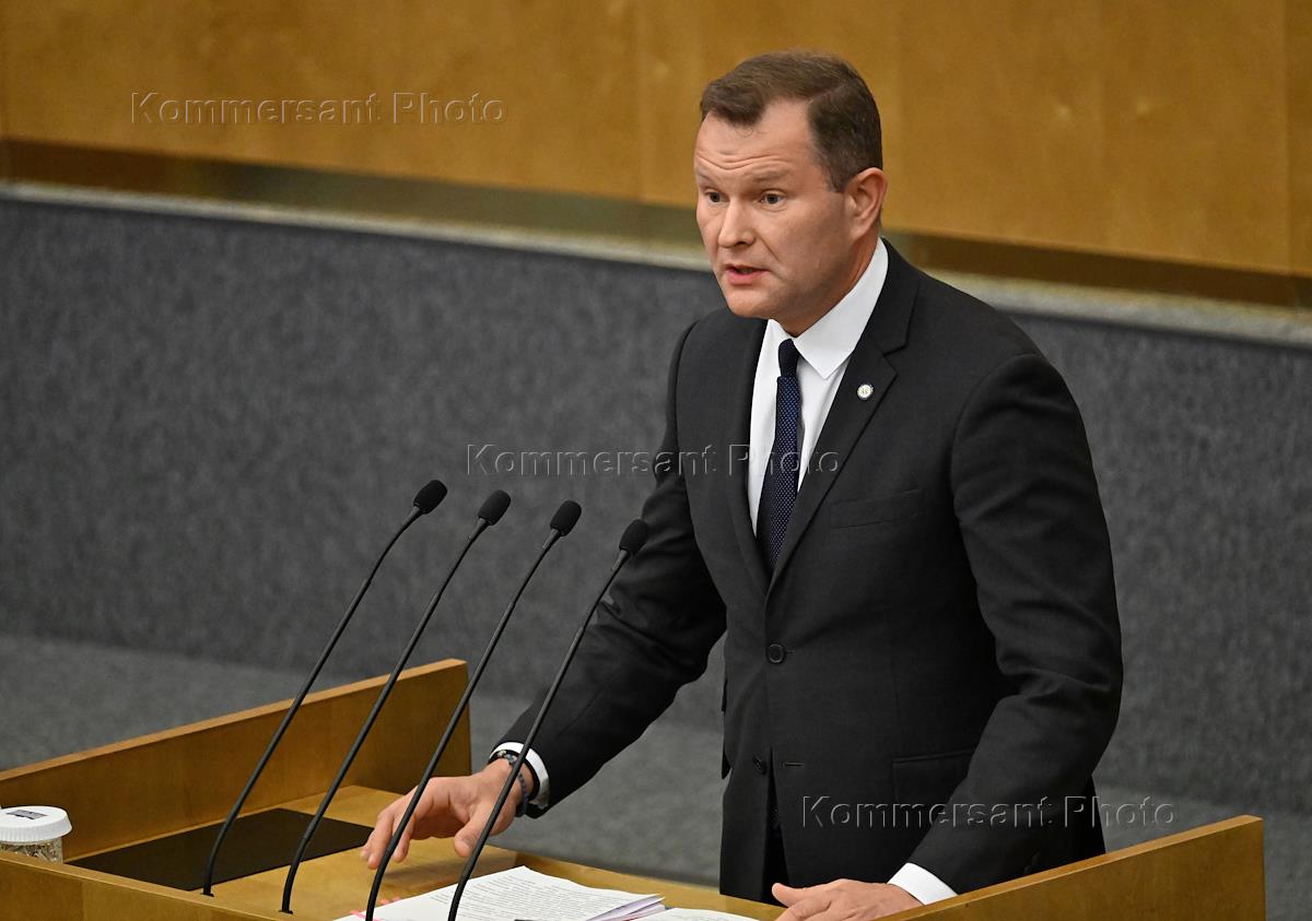Пленарное заседание Государственной думы (ГД) России. Статс-секретарь - заместитель министра транспорта России Дмитрий Зверев во время выступления на заседании.