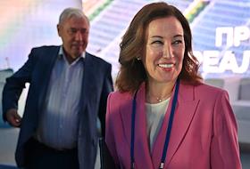 XXI Международный банковский форум в конференц-центре отеля "Pullman Сочи Центр". Сессия "Российская экономика в меняющемся мире". Первый заместитель председателя правления АО "Россельхозбанк" Ирина Жачкина перед началом сессии.