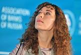 XXI Международный банковский форум в конференц-центре отеля "Pullman Сочи Центр". Круглый стол "Игры разума: меры поддержки для развития отрасли". Директор проектов дивизиона "Городская экономика» АНО "Агентство стратегических инициатив" Ольга Шандуренко во время заседания.